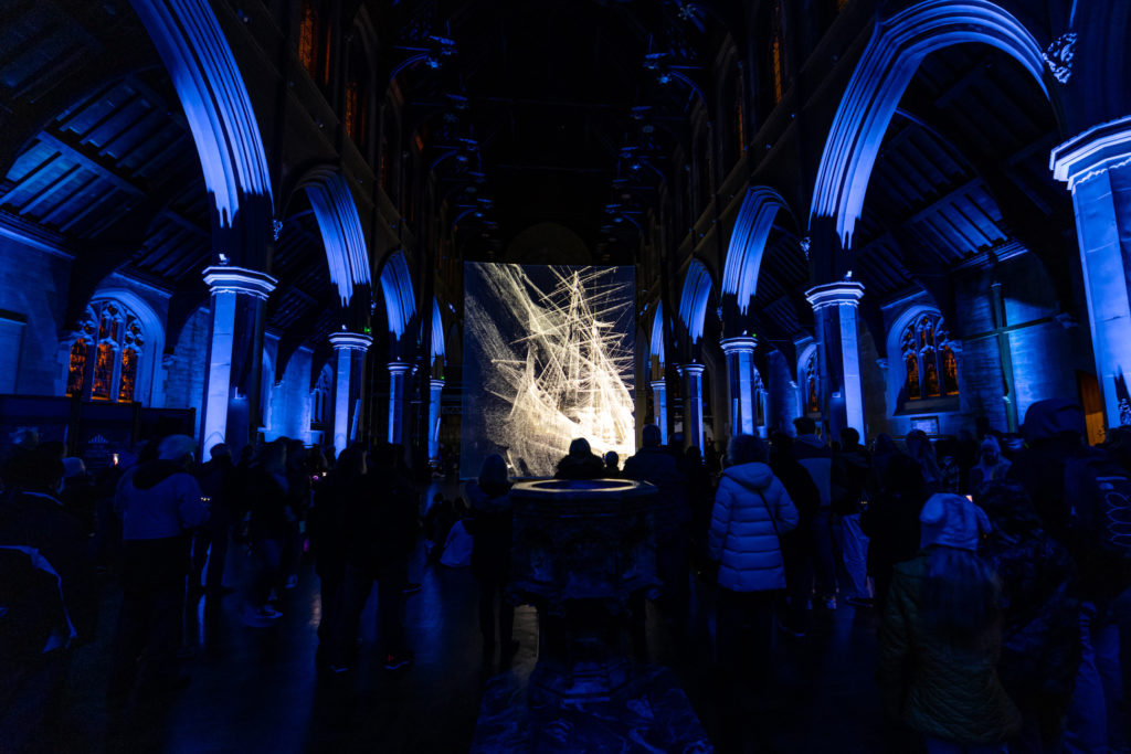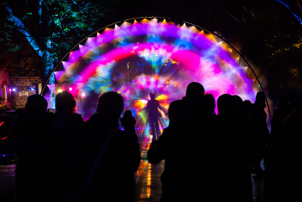 From Thursday 18th – Sat 20th November 2021 Portsmouth saw local and national artists take to, the streets and local venues for 3 nights of free art and light installations to celebrate the city, including: projections on buildings, large scale murals, light installations, dance and theatre performances, a lantern parade, audio trails, braille art, projection mapping, laser dance, We Create Market and more.